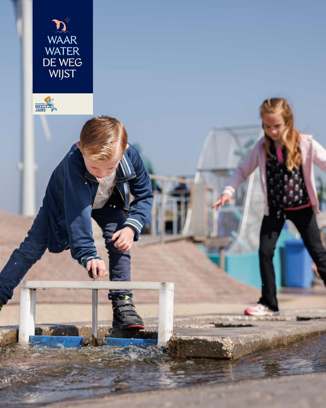 Kinderen leren spelenderwijs hoe Nederland leeft met water. Ouders ontdekken het indrukwekkende verhaal achter de Oosterscheldekering.